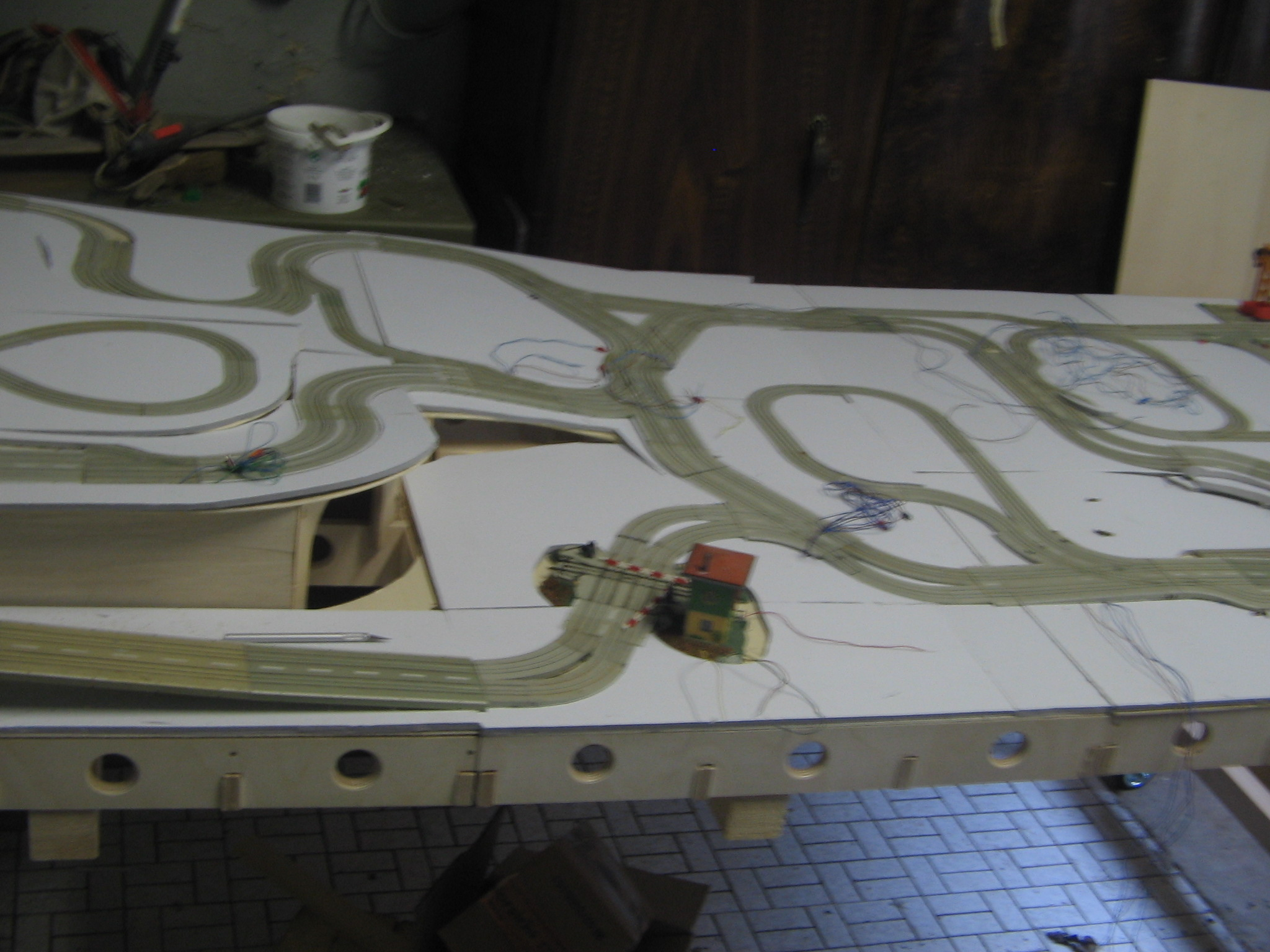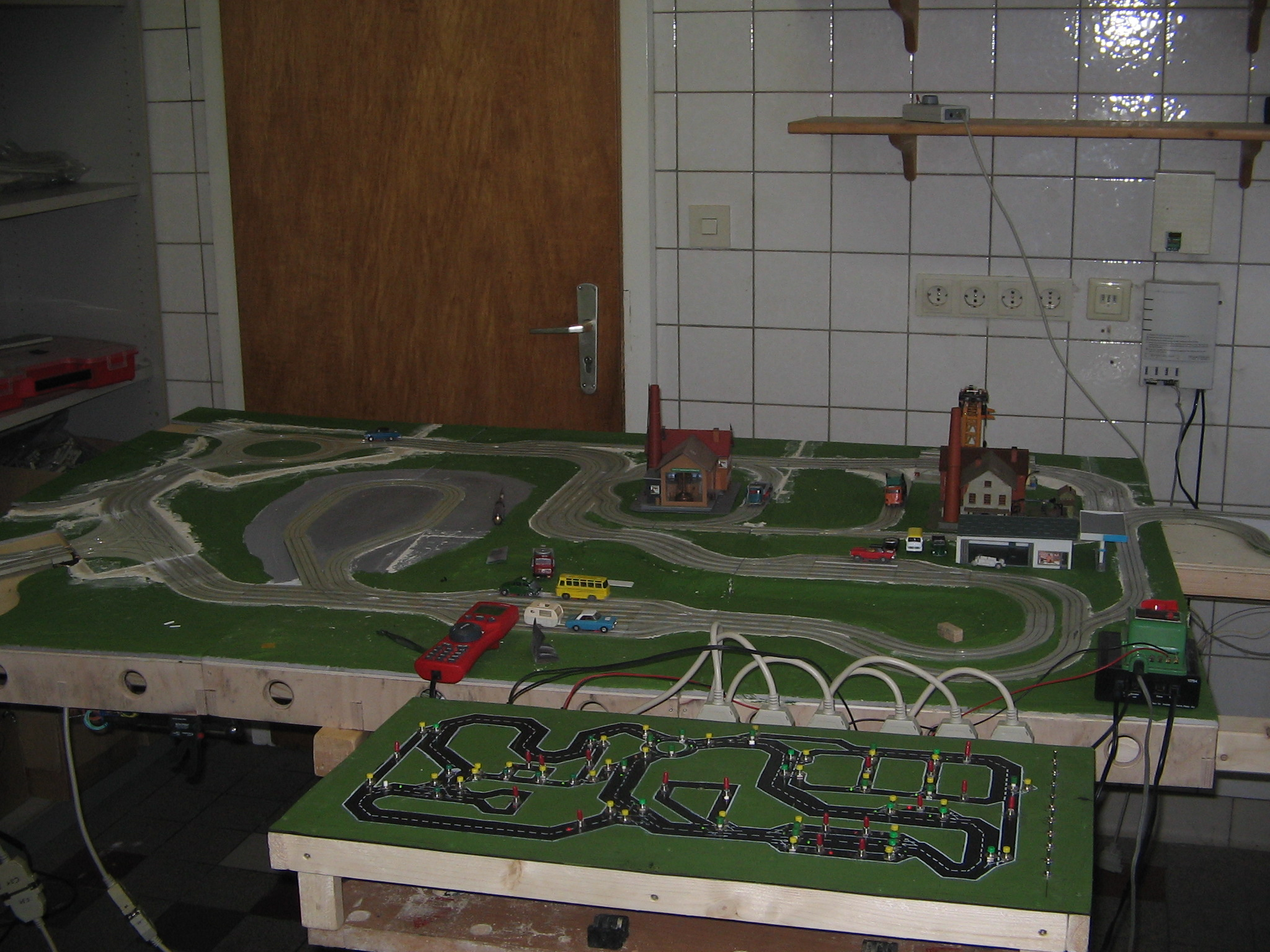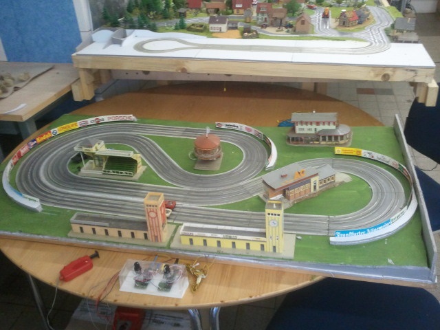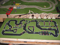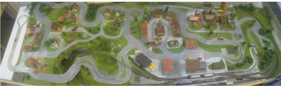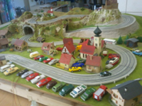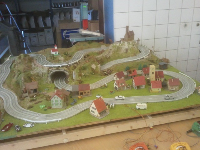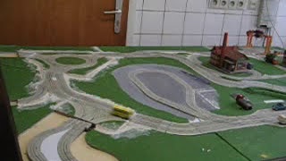 Testbahn für 6 Autos mit gefrästen Abzweigen