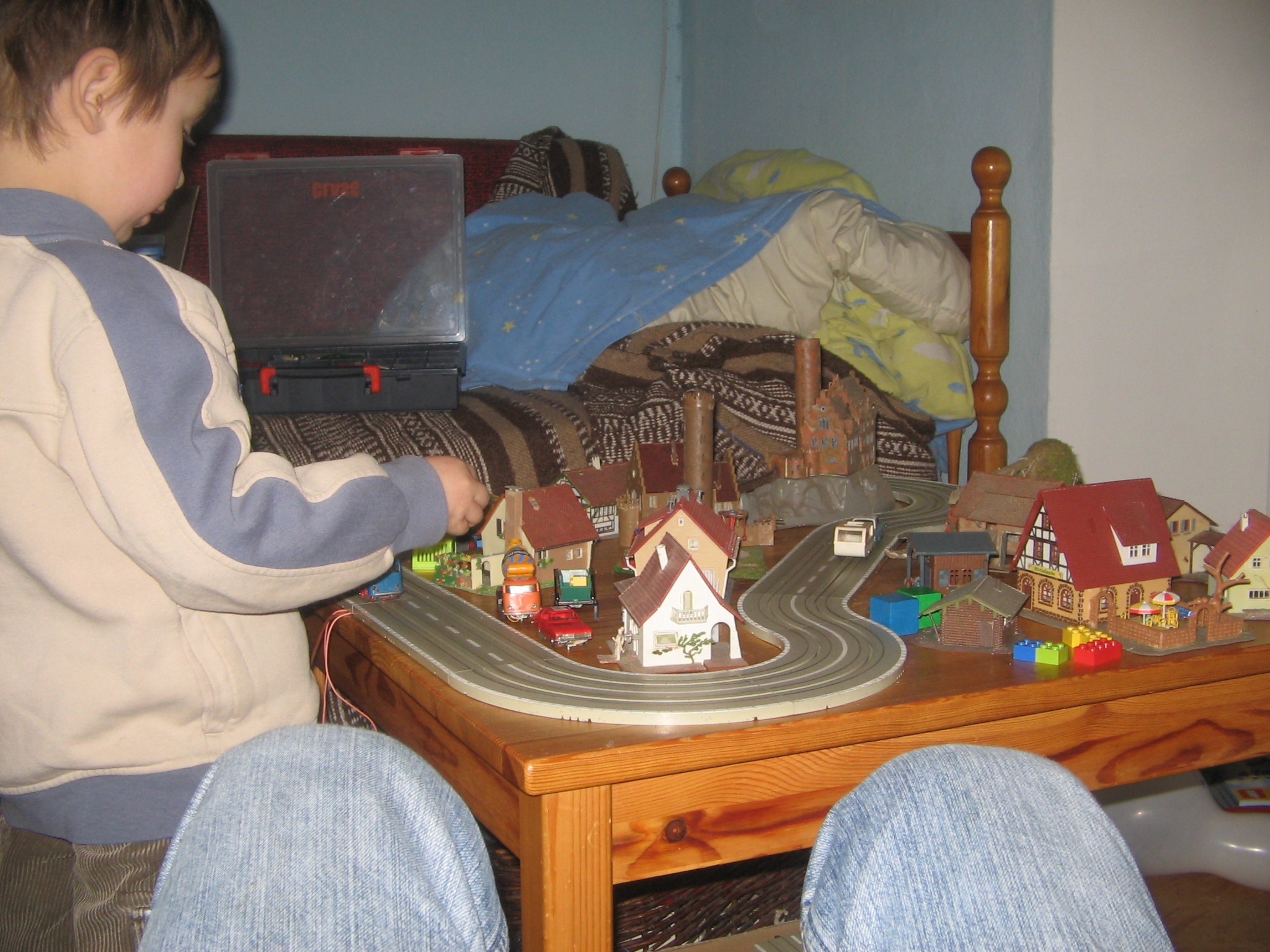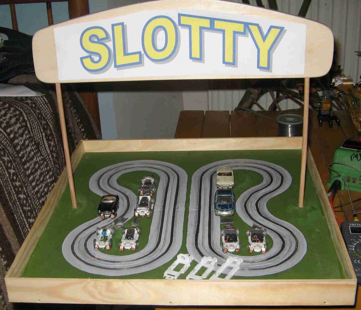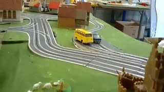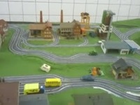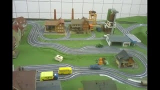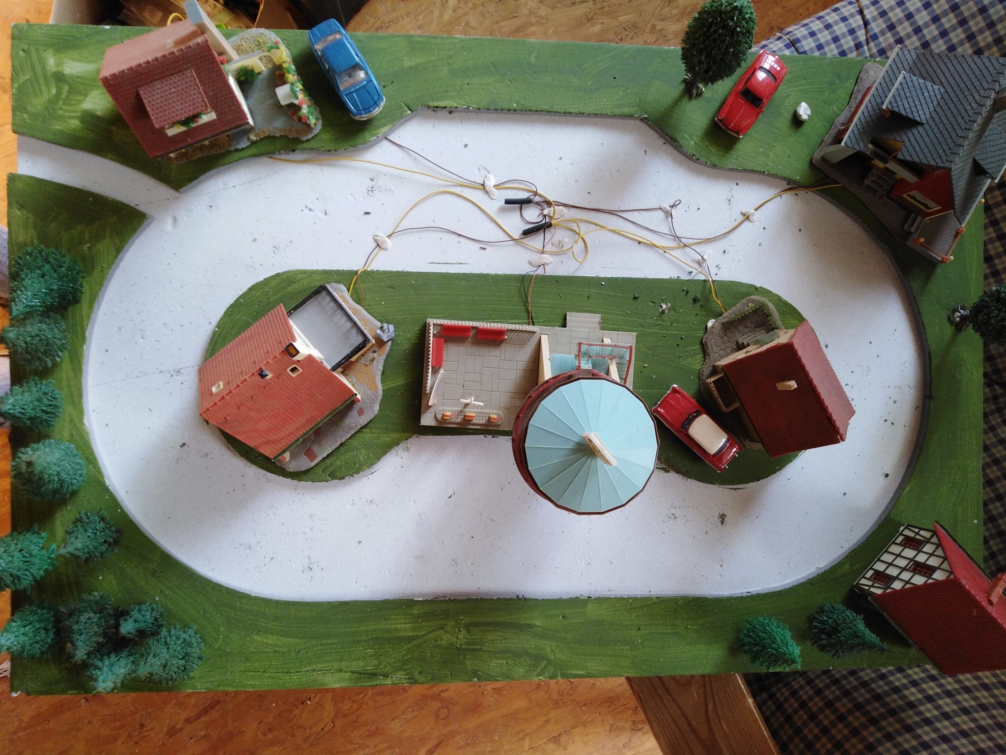 Testbahn für 6 Autos mit gefrästen Abzweigen