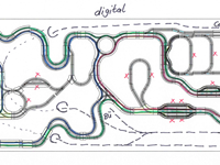 Testbahn mit gefrästen Abzweigen