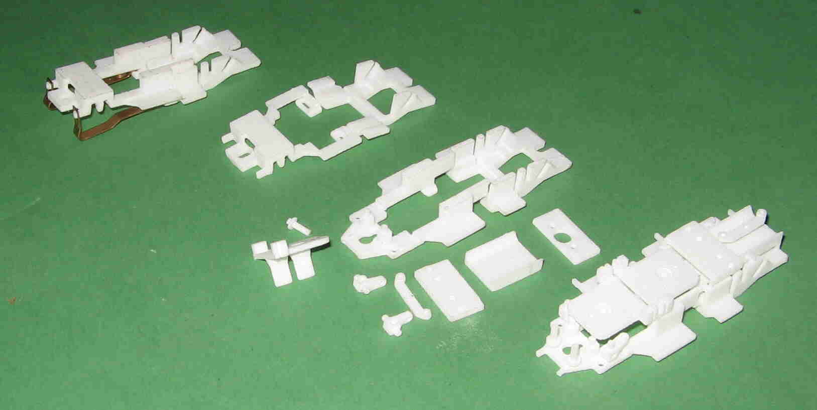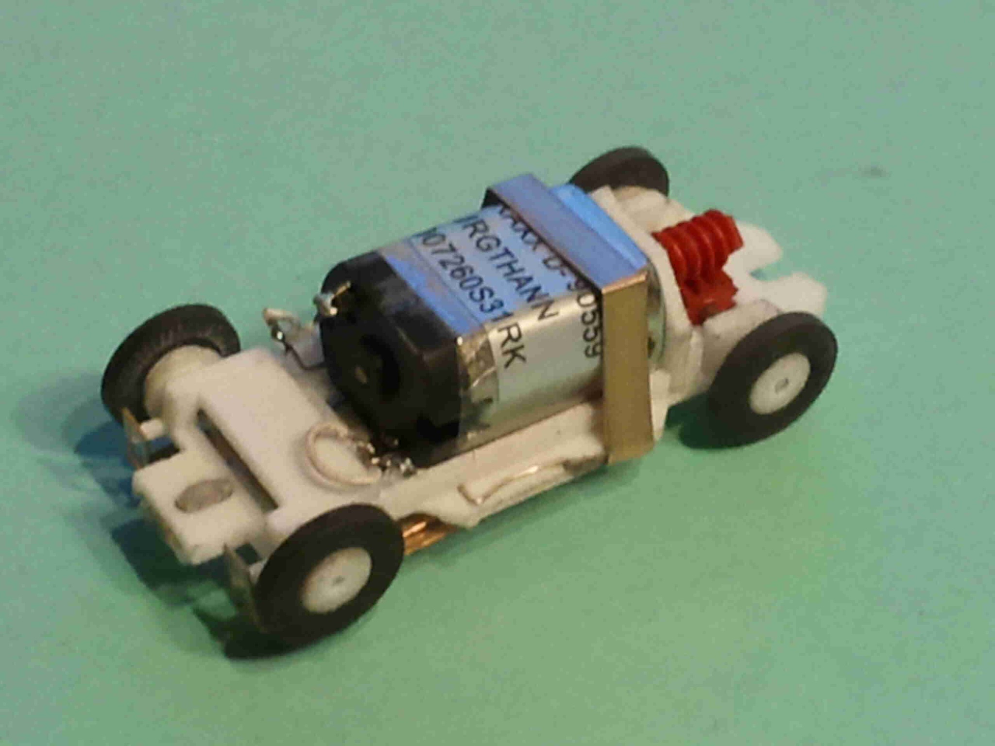 Der Umbau von Blockmotorchassis ist vielleicht etwas leichter, dies habe ich aber nie probiert, weil ich davon zu wenige habe. Außerdem gibt es davon auch welche, wo die Trennung von Fahrbahn- und Motorstrom gar nicht so einfach ist. In den meisten Fällen ist es jedenfalls so, daß man an den Chassis Veränderungen vornehmen muß, womit diese nicht mehr im Originalzustand sind und damit praktisch wertlos werden.
