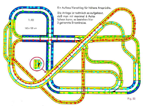 Beim klassischen Aufbau eines zweispurigen Ovals konnten zwei Fahrzeuge fahren, und mit Halbwellensteuerung konnte man auf jeder Spur noch eines dazuschalten. Bei geschickter Planung konnte man noch eine dritte Spur hinzufügen, womit bereits 6 Fahrzeuge unterwegs sein konnten.