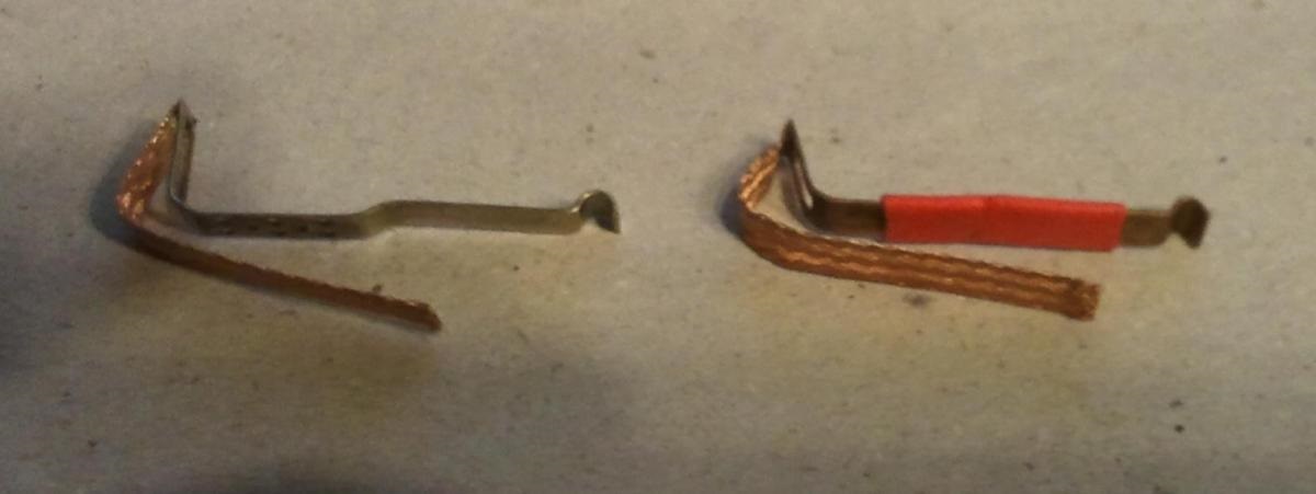 Litzenschleifer, links normal, rechts geteilt für Decodereinbau